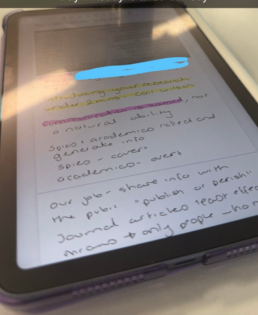 I also got to play around with my iPad mini and Apple pencil which has allowed me to build my note taking strengths (writing notes/drawing connections by hand) while addressing my note taking weakness (losing every piece of paper or notebook I’ve ever owned). It was also good practice as that is going to be the approach for my researcher reflective journal once I start data collection.
